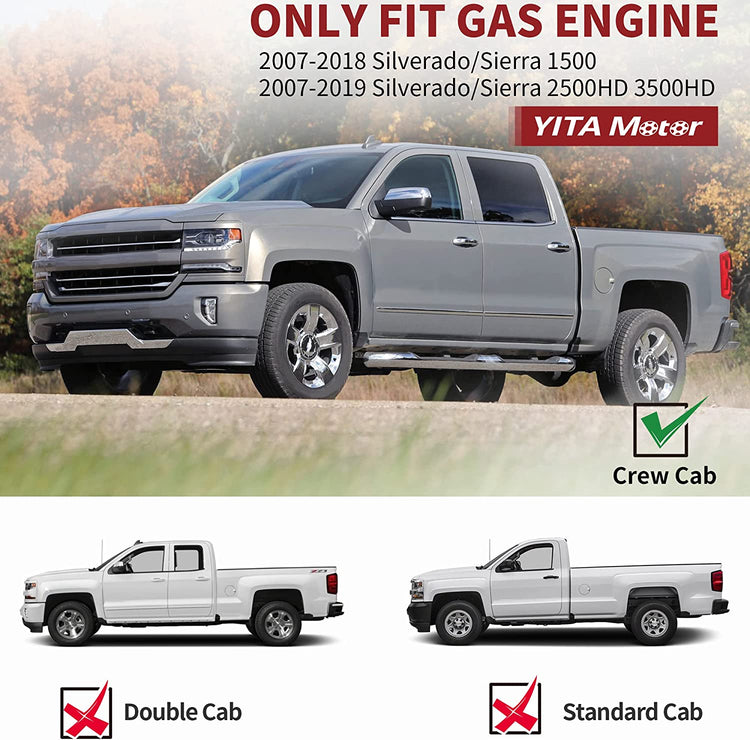 - IMPORTANT - Only fit Crew Cab with 4 full-size doors, NOT for double cab or regular cab. (Please check the Cab size picture before ordering); DOES NOT FIT 2007 Silverado classic or 2019 Silverado 1500 LD. NOT for Diesel Engine