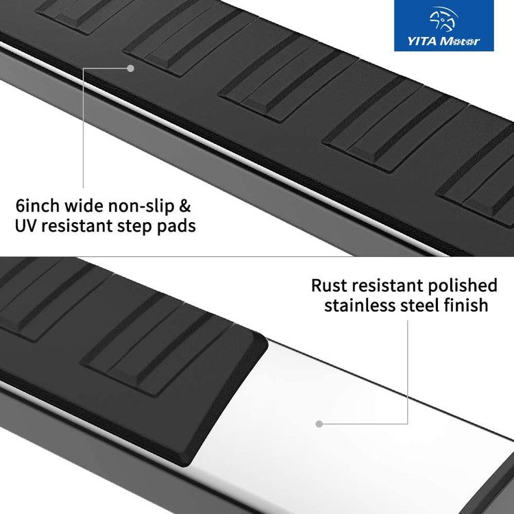 - GREAT QUALITY - Our running boards are made of the finest stainless steel material, which is sturdy, durable, wear-resistant and rust-resistant. After repeated tests, it can resist the corrosion of salt spray, and resist ultraviolet radiation without discoloration.