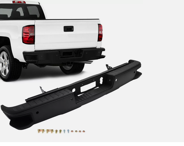 Black Rear Step Bumper Assembly For 2014-2018 Chevy Silverado GMC Sierra 1500 w/ sensor holes