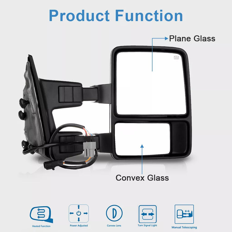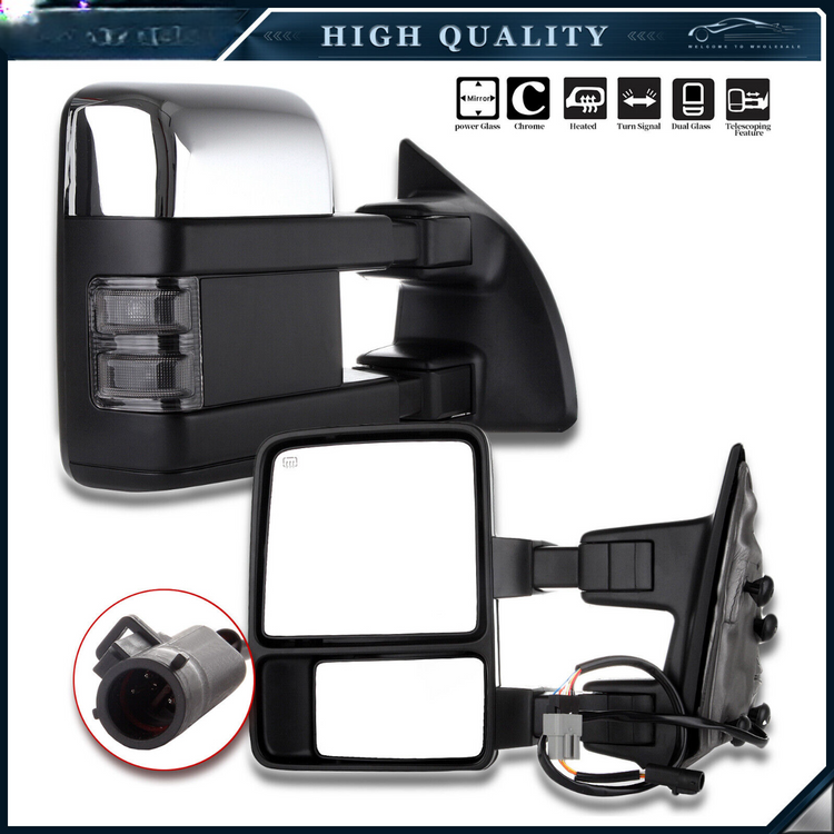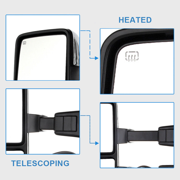 Chrome Power Heated Tow Mirrors for 1999-2007 Ford F250-F550 Super Duty LED Signal