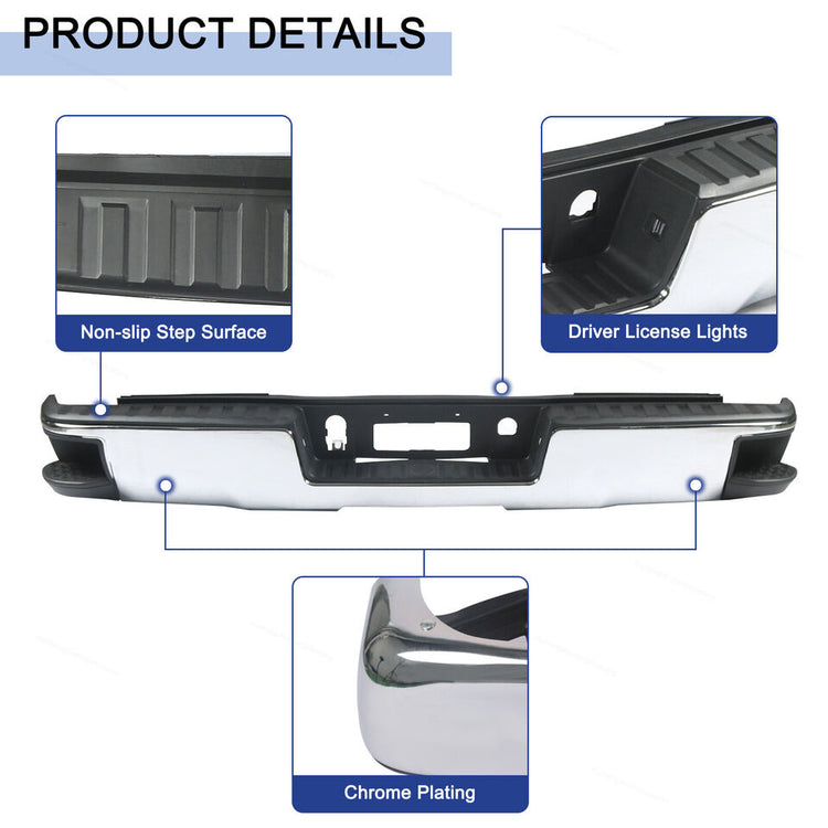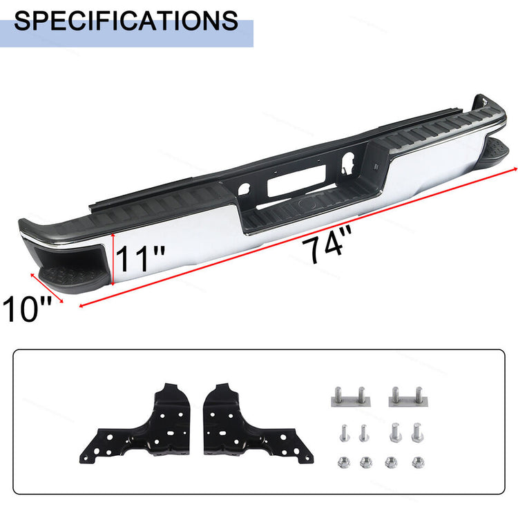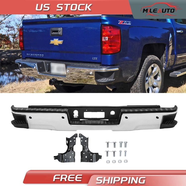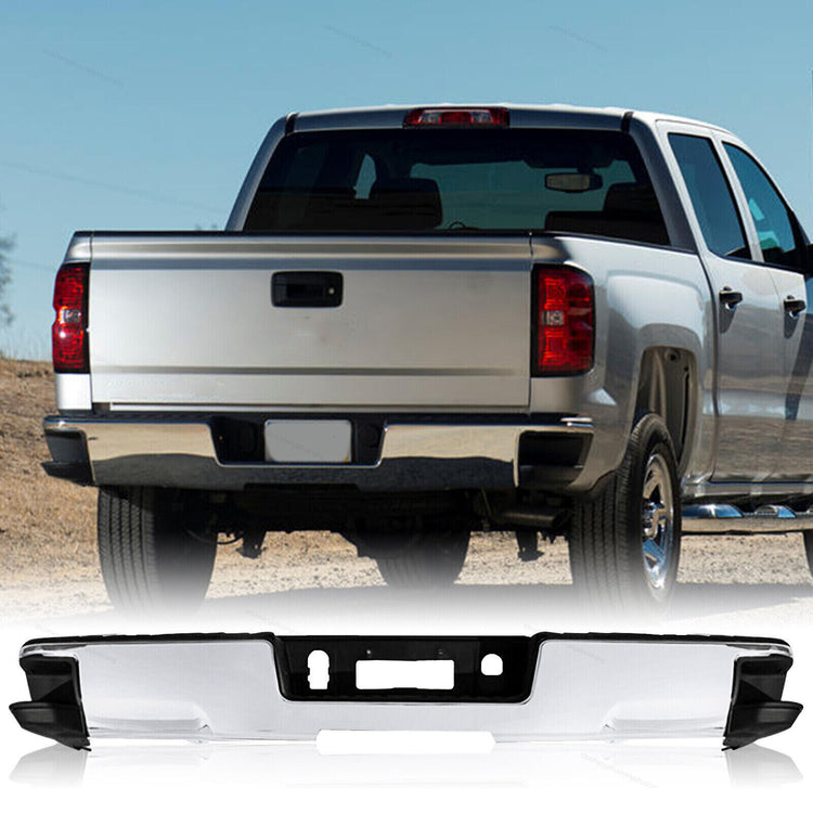 Chrome Rear Bumper Assembly For 2014 2015 2016-2018 Chevy Silverado Sierra 1500