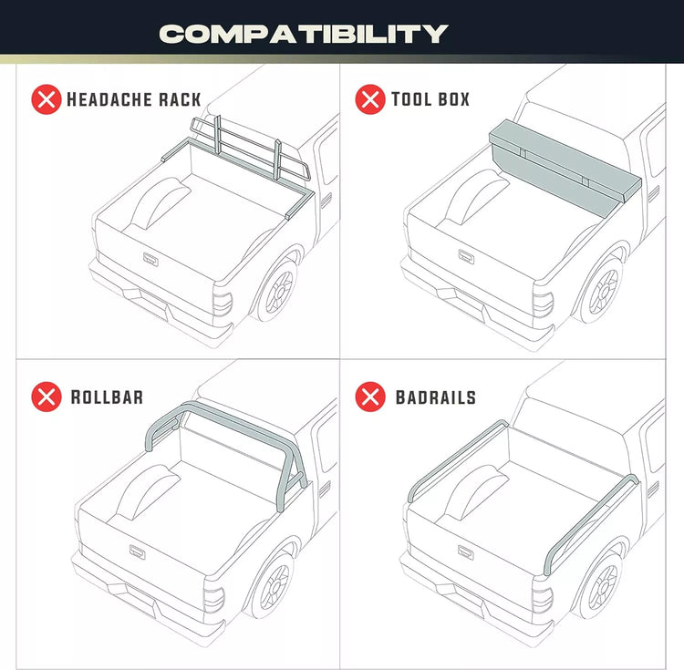 Compatibility: Fits 2007-2024 Chevy Silverado and GMC Sierra 1500 with Fleetside 5.8ft (69.3in) truck beds. Note: Not compatible with CarbonPro beds, factory utility track systems, or roll bars.