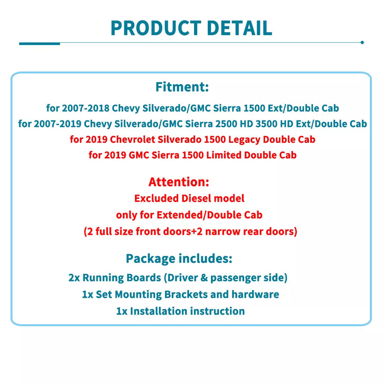 for 2007-2018 Silverado Double/Extended Cab 6" Running Boards Side Step Bars S/S