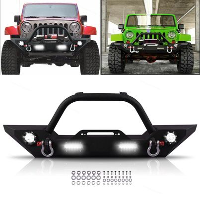Front Bumper W/ 4 LED Lights & D-Rings For 2007-2018 Jeep Wrangler JK Unlimited