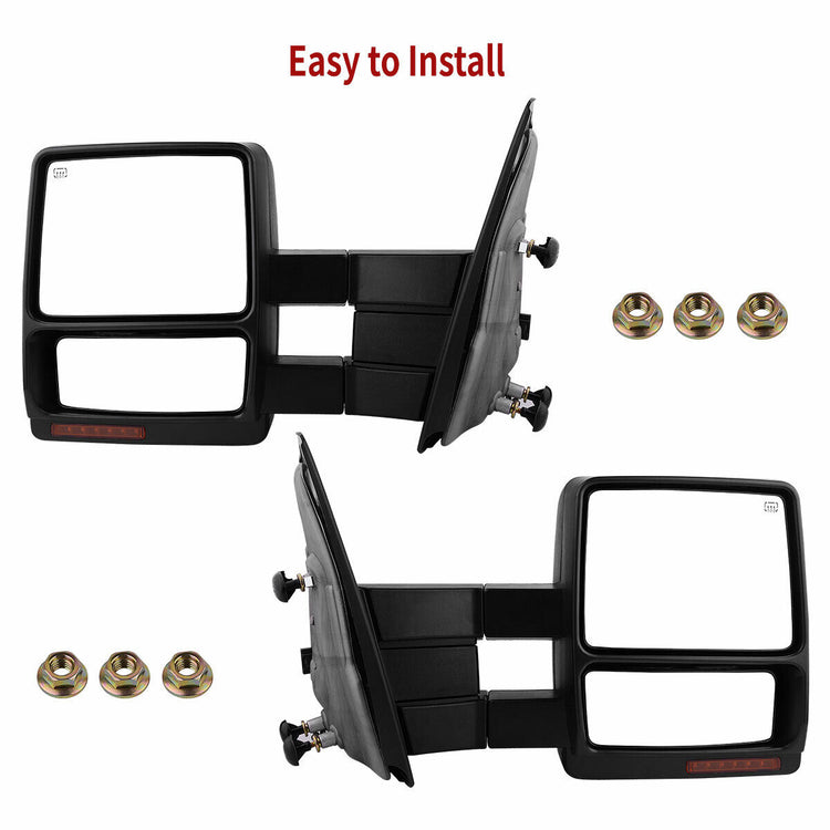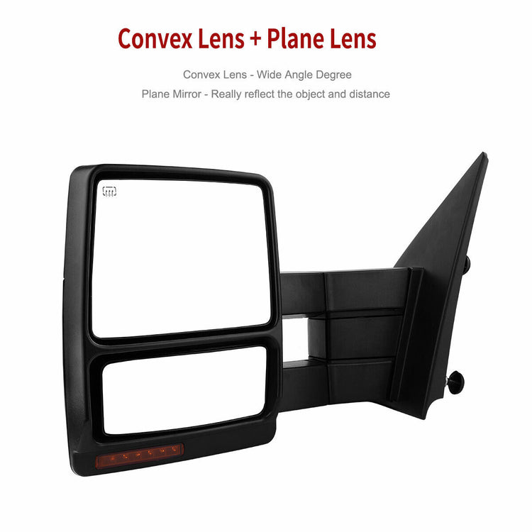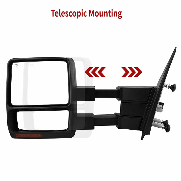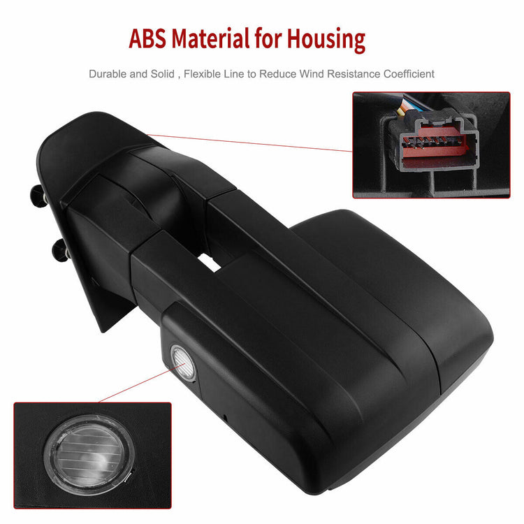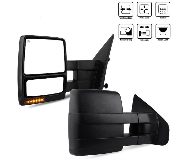 Pair Power Heated Tow Mirrors For 07-14 Ford F150 Pickup LED Turn Signal Puddle