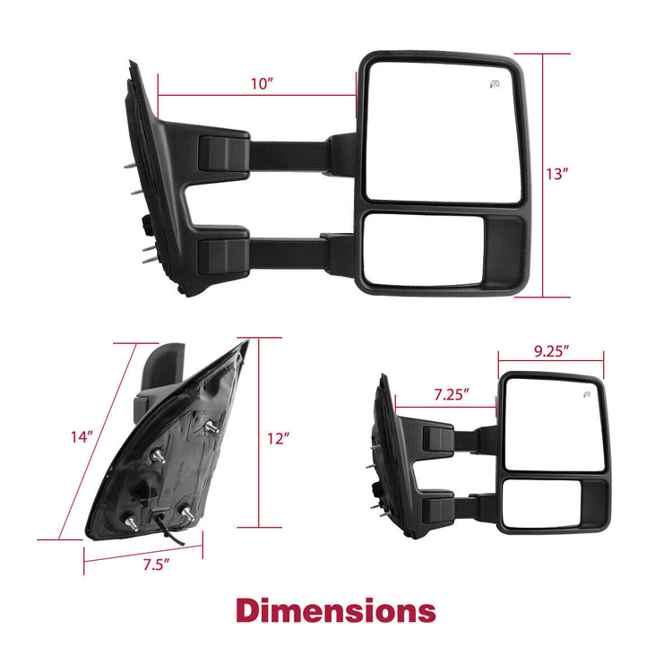Pair Tow Mirrors for 08-16 Ford F250 F350 Super Duty Turn Signal Power Heated