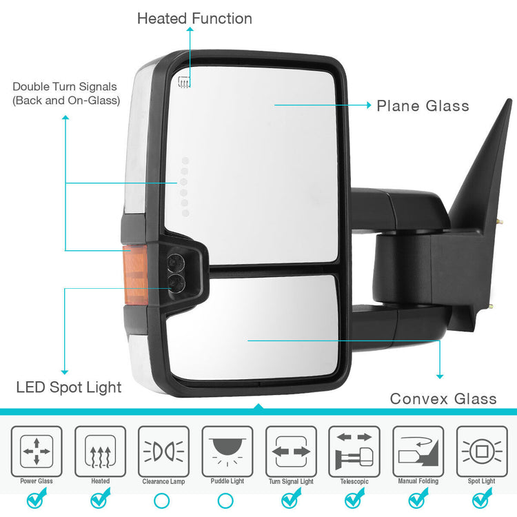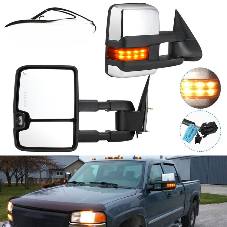 Power Heated LED Turn Signal Tow Mirrors for 03-06 Chevy Silverado 1500 2500 HD