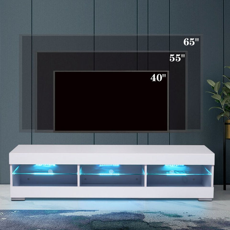 💥SALE💥TV Cabinet Stand for TVs up to 65" w/ LED Lights High Gloss w/ Storage, White