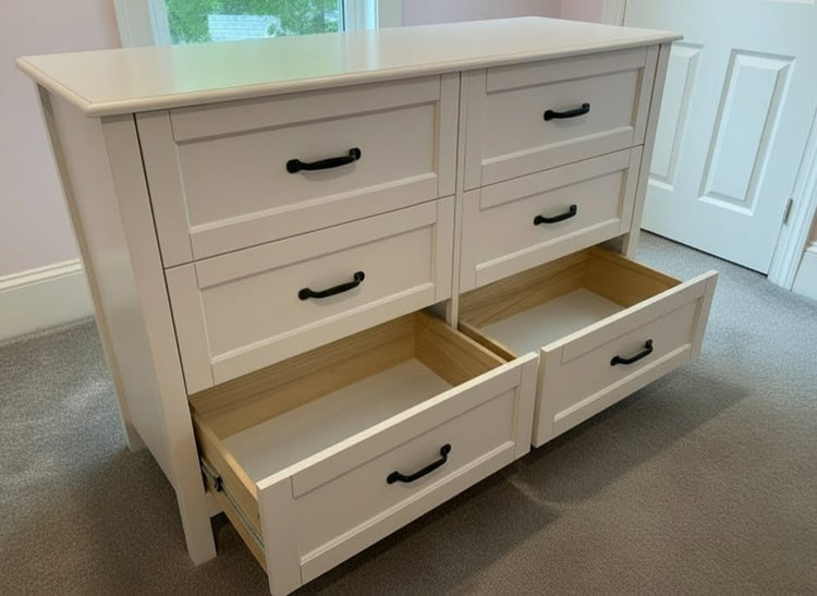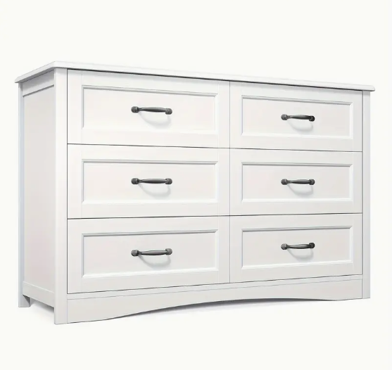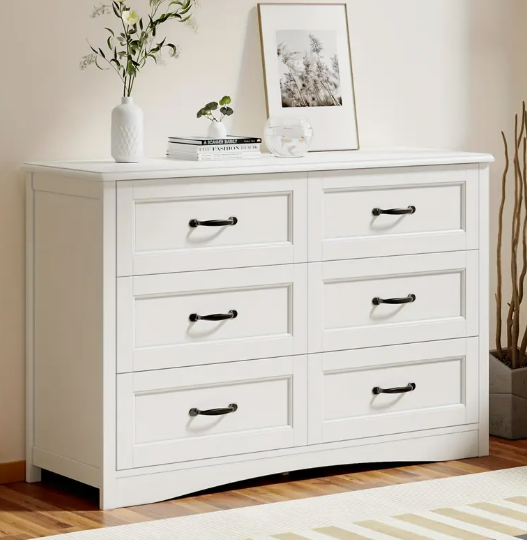 This 6-drawer dresser offers ample room with each drawer measuring 13.3" D x 21.3" W x 5.2" H, holding up to 30 lbs—perfect for clothes, documents, and more.