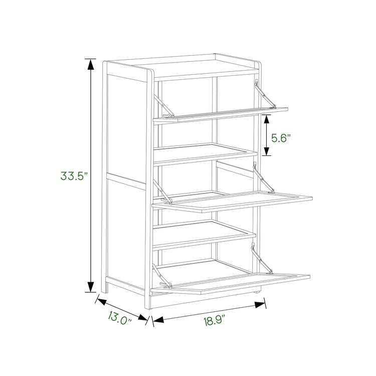 Capacity: 15 pairs Dimensions (L x W x H) 18.90 x 13.00 x33.50 Inches Drop-Down Door This item equips with a drop-down door which is more compact than sliding doors, enabling your items away from dust and moisture and providing privacy. Durable Bamboo Material Bamboo’s tensile strength is 28,000 per square inch versus 23,000 for steel. It is stronger than most furniture than you have in your home.