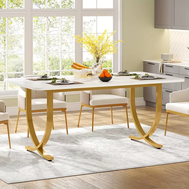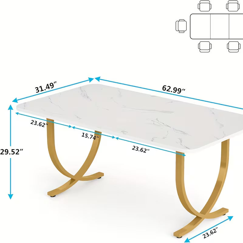 Bring modern style and everyday functionality to your home with this 63" Rectangular Faux Marble Dining Table, perfect for small spaces, apartments, and kitchens. Designed to seat 4–6 people, this space-saving dining table is ideal for family meals, dinner parties, and daily use.