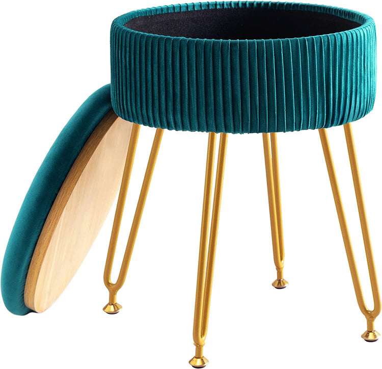 Mid-Century Modern Velvet Storage Side Table, Ottoman Foot Rest and Tray