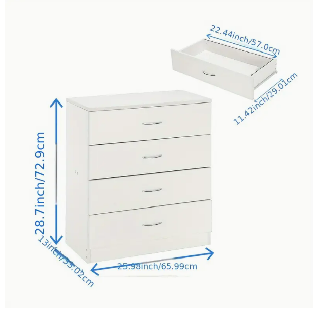 4 Drawers cabinet can be used as a dresser or just storage cabinet, keeping your space organized.
