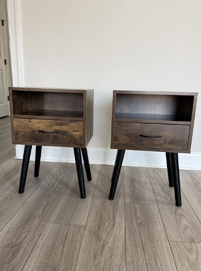 Night Stand Set of 2 Solid Metal Legs Furniture Bedside Table