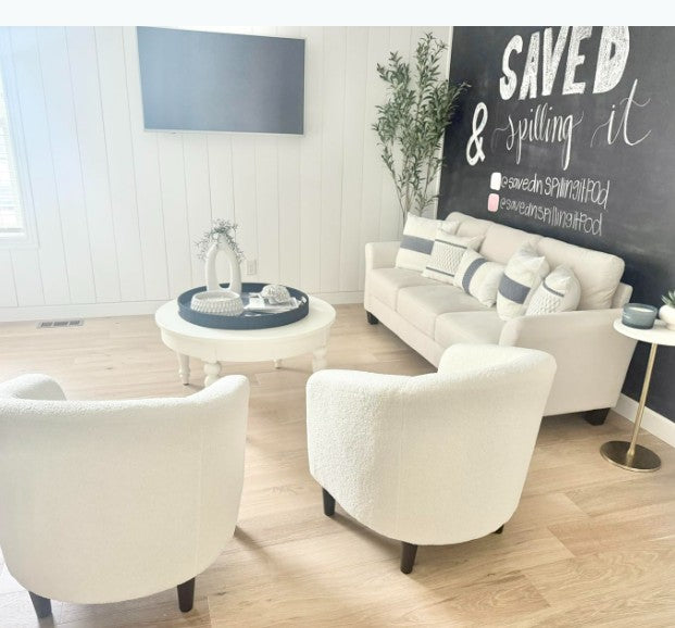 Premium Materials: Upholstered in soft, elegant ivory boucle fabric (sherpa-like texture) that provides a cozy and sophisticated look for any room.