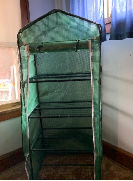 - Roller zipper door panel rolls up allowing easy access to plants and seeds