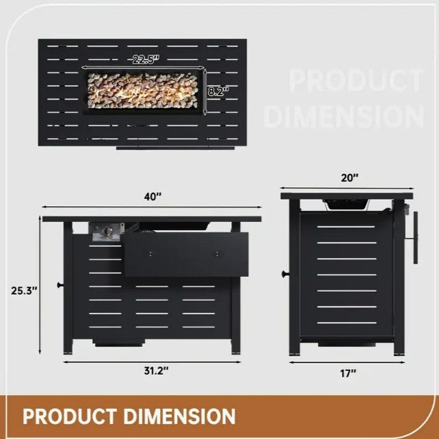 40" Fire Pit Propane Gas Tabletop 50, 000 BTU with Lid, Rain Cover, for Outside Garden Backyard