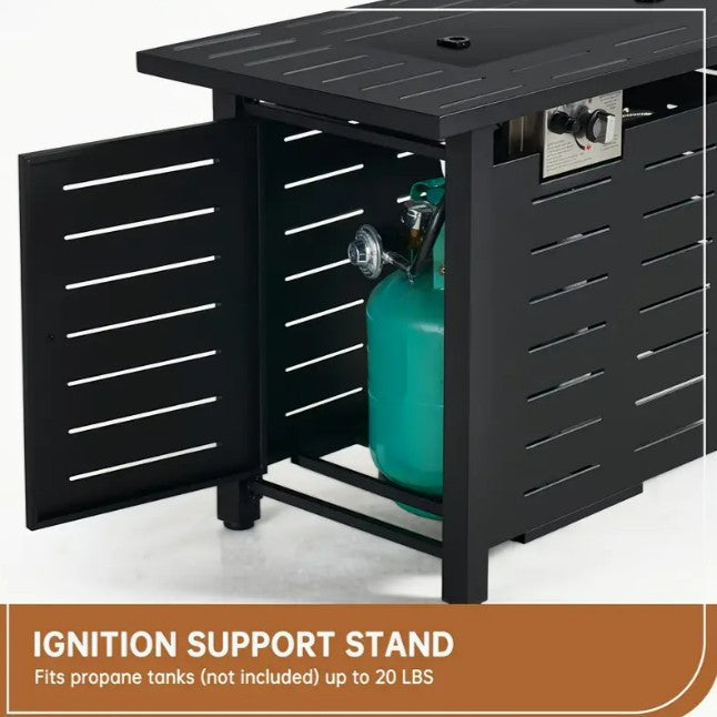Designed for clean-burning performance, this propane fire pit produces no smoke or flying sparks, minimizing fire hazards. Crafted from heavy-duty cold-rolled carbon steel with a weather-resistant powder-coated finish, it delivers exceptional durability to withstand outdoor elements. (Note: Propane tank not included; compatible only with propane gas cylinders.)
