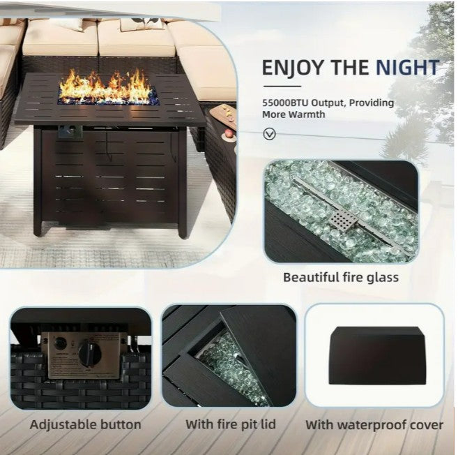 Outdoor Fire Pit Table – Dual-Use Propane Gas Table with Fire Pit & Dining Functionality