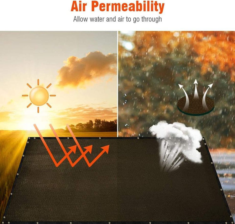 UPGRADE Privacy Fence Screen is composed of heavy-duty knitted net measured 6ft high by 50ft long, suitable for fence with the height of 6ft, or slightly higher. Please accurately measure your fence before purchase. Place Privacy Solution! High density knitting process provides the fence screen with high visibility blockage while allows air and breeze to go through freely. It will not make the area cramped visually. Wide reinforced black bindings are tear-resistant. Premium copper grommets are rust-proof. 3 grommets are arranged in triangle works well in sustaining more drug force.