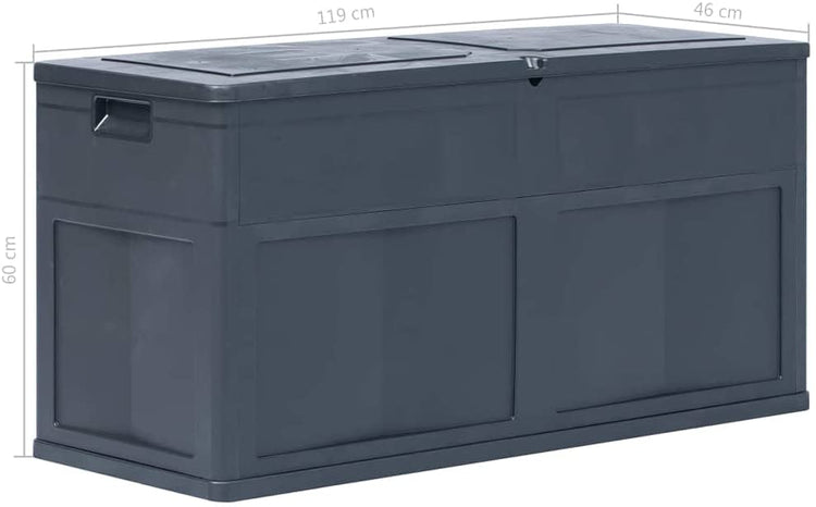 - IDEAL STORAGE: Storage capacity of 84.5 gallons is perfect for patio storage.DIMENSIONS: 46.9" x 18.1" x 23.6" (L x W x H)