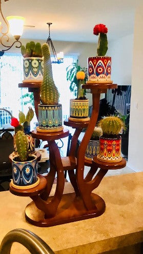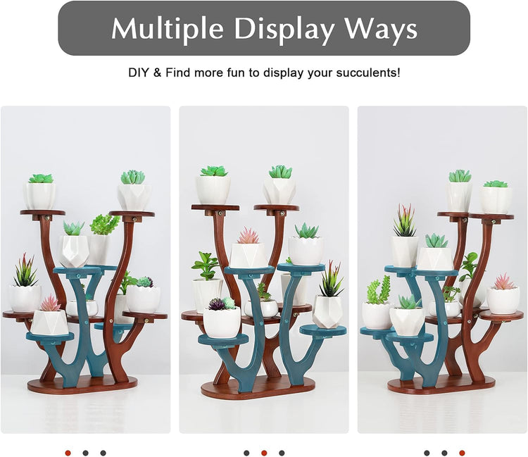 - 9 POTTED SUCCULENTS STAND: Features 8 small 4.6-inch round trays on 4 levels and one small 3.8 inch square tray in the middle, able to hold 9 succulents pots or mini plants on different heights without crowded in the narrow windowsill or tabletop
