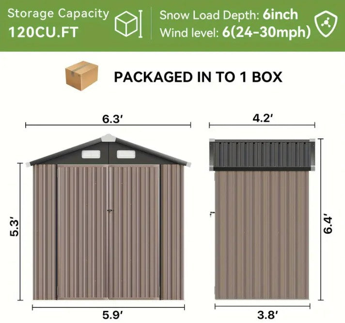 Metal Outdoor Storage Shed 6.3 x 4.2 Ft Steel Utility Tool Shed Storage House with Door & Lock