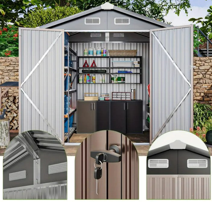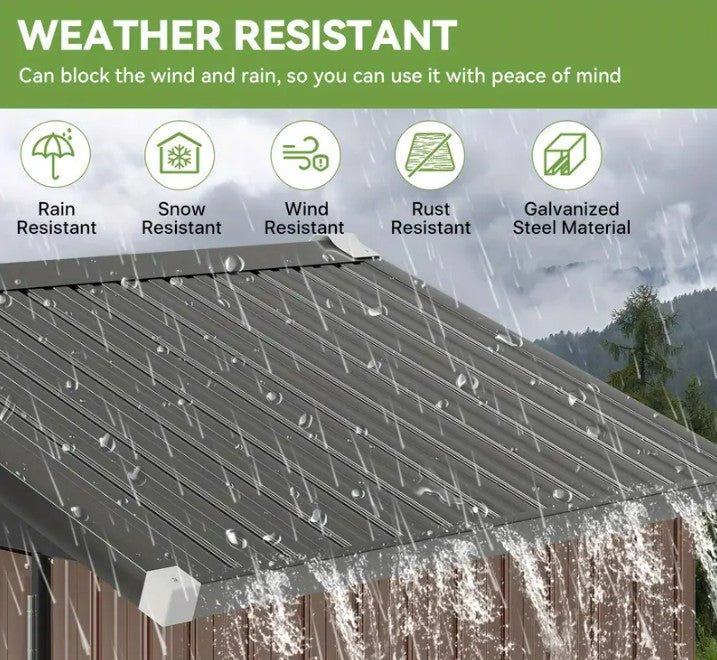 Sturdy & Stable: The galvanized steel utilized in shed structures is highly durable and long-lasting, providing ease of use. This resilient material is resistant to UV rays, ensuring that it will not fade or discolor after prolonged exposure to the sun.