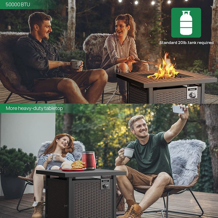 - Auto-ignition Device——In 2022, there is no need to endure the inconvenience, insecurity, and smoke of burning wood. Pre-installed braziers and thicker materials allow you to assemble the fire pit table quickly. And usually, just turn a knob for a smokeless flame.