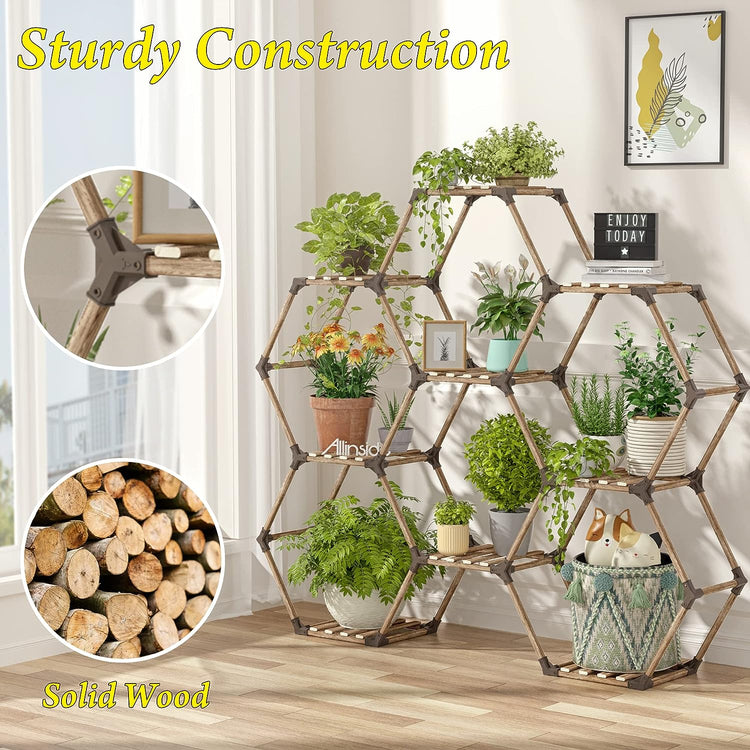 New! Plant Stand Indoor, Wood Outdoor Plant Shelf for Plants, 9 Potted Ladder Plant Holder