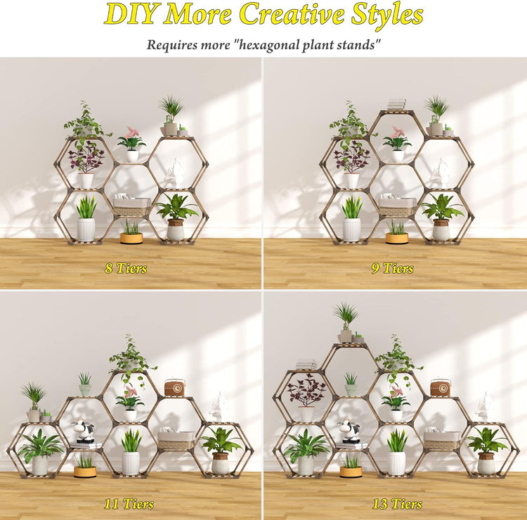 - Creative Style: The plant stand's hexagonal structure performs more splendid styles, by changing the position of the hexagons, you will get a unique shape.