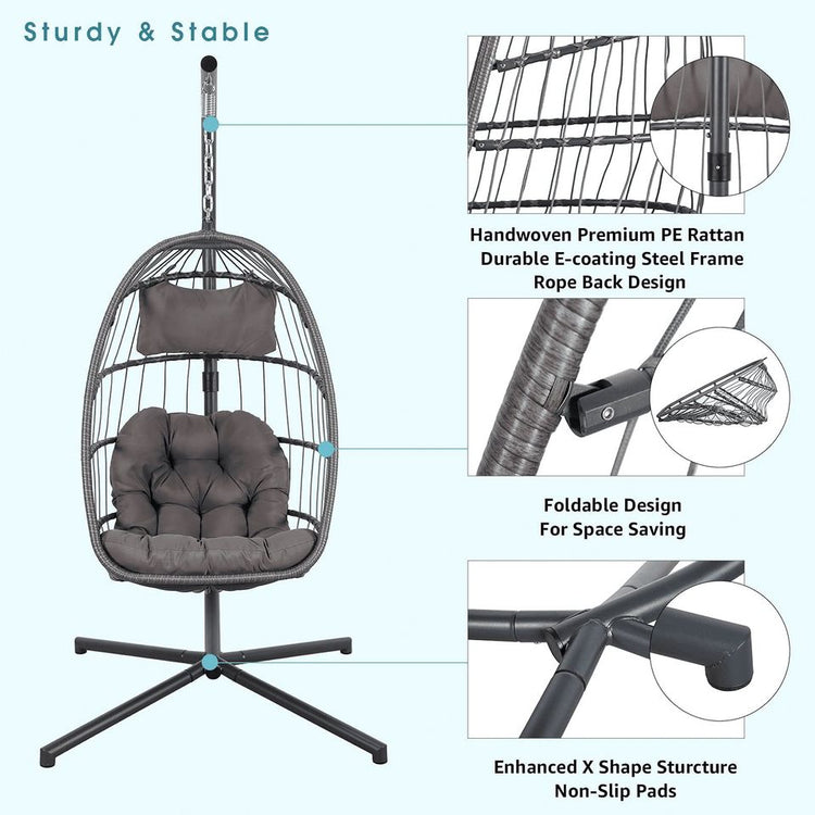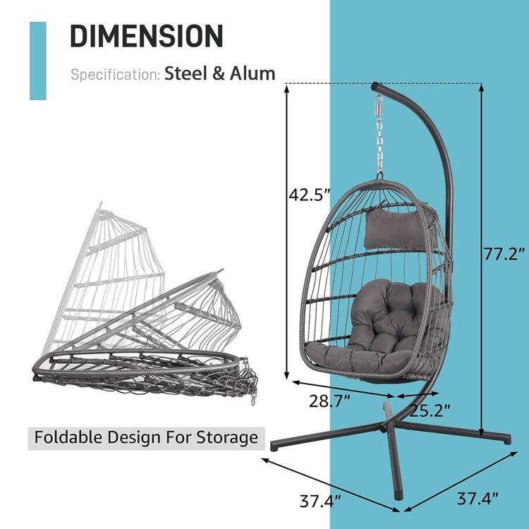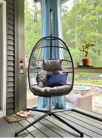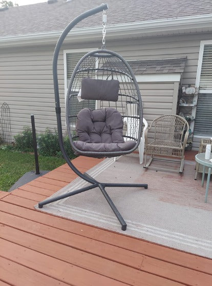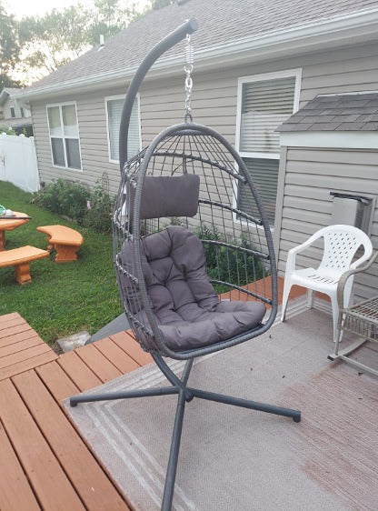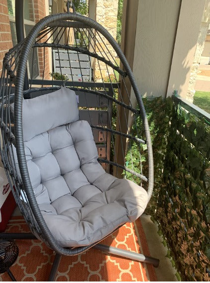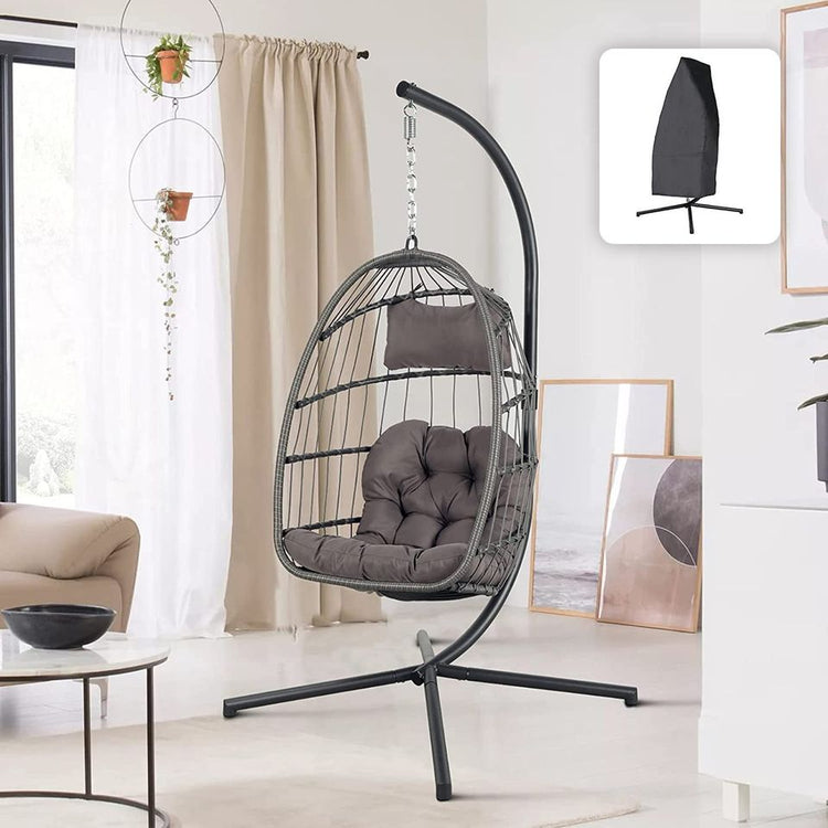 NEW Swing Egg Chair Patio Wicker Rattan Hanging Rope Back Cushion with Waterproof Cover
