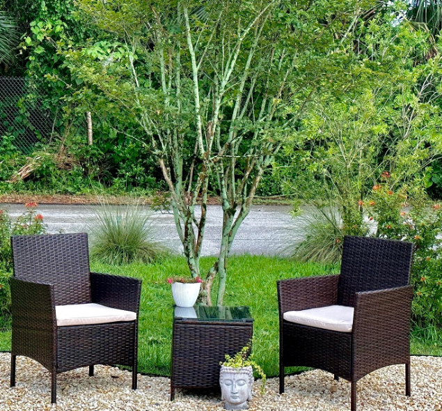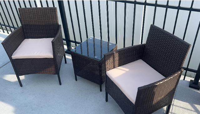 - - Sturdy & Durable: Rattan patio furniture set is made of brown PE rattan and strong steel frame, It is durable enough to withstand rain and wind for long time using. Featuring sturdy construction and durable rattan, this porch furniture set can withstand the test of time and high temperature