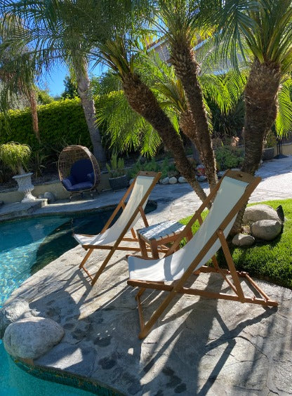 Our lounge chair have 3-Level.Customize your comfort level with unlimited reclining positions include a lay flat option. Our sling chair is foldable and adjustable height. Adjustable design