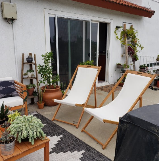 Set of 2 Beach Sling Chair Set Patio Lounge Chair Outdoor Reclining Chair
