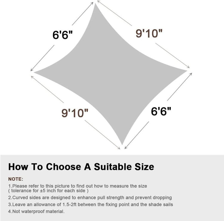 Sun Shade Sail Canopy 6'6"x9'10", 185GSM Fabric Permeable Pergolas Top Cover