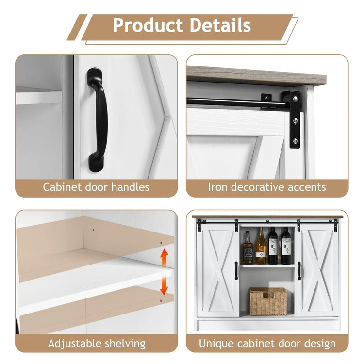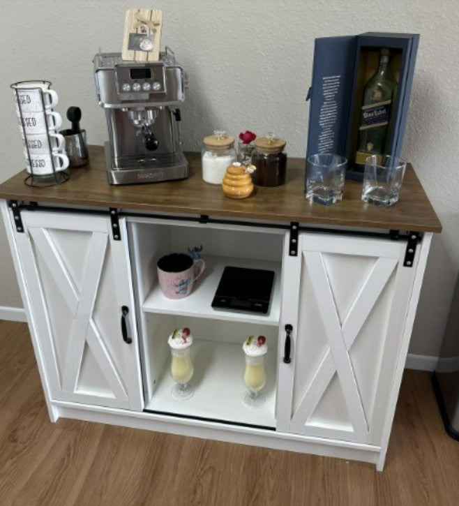 Farmhouse Coffee Bar Cabinet with Sliding Barn Doors