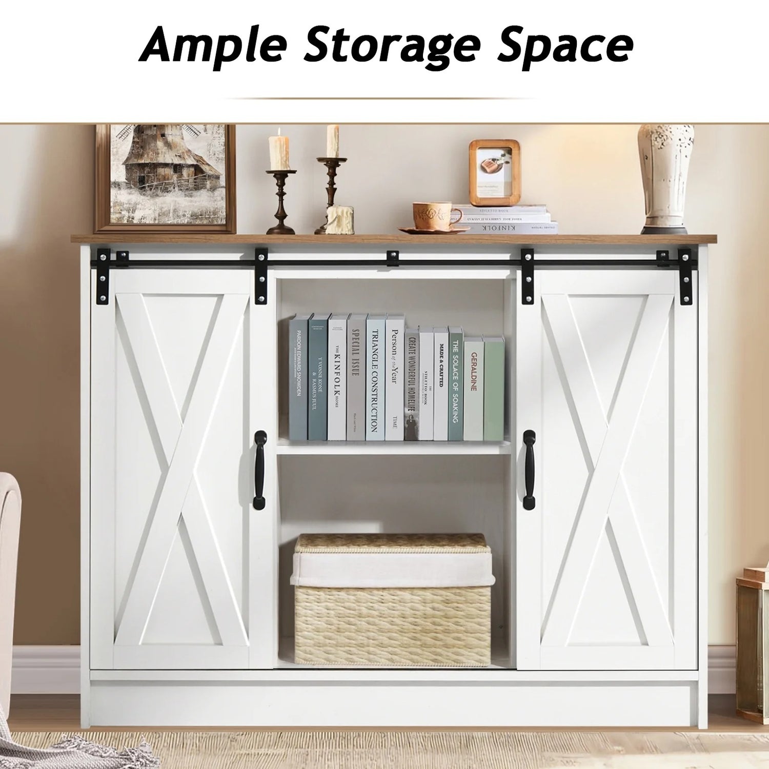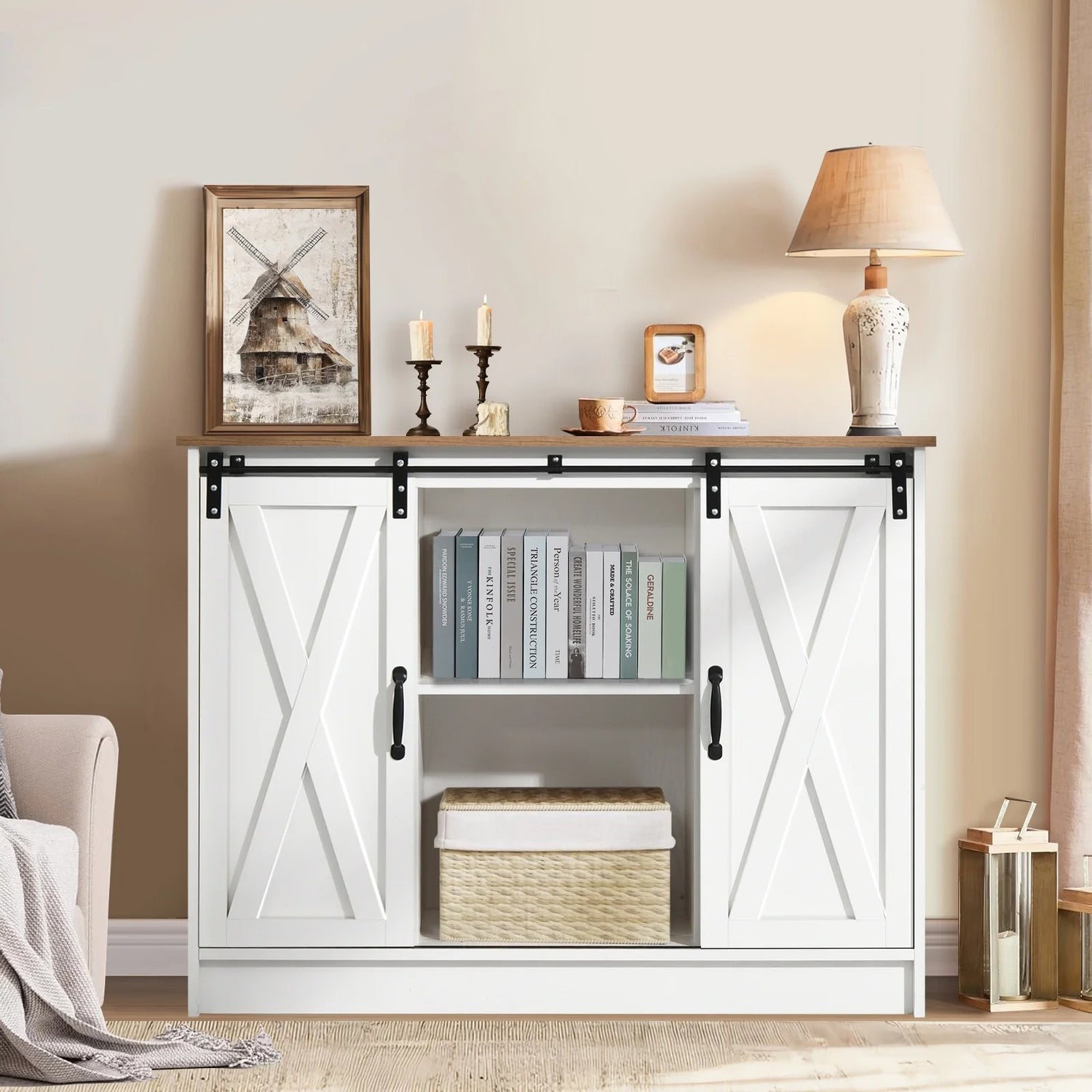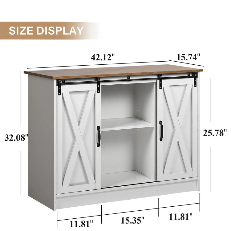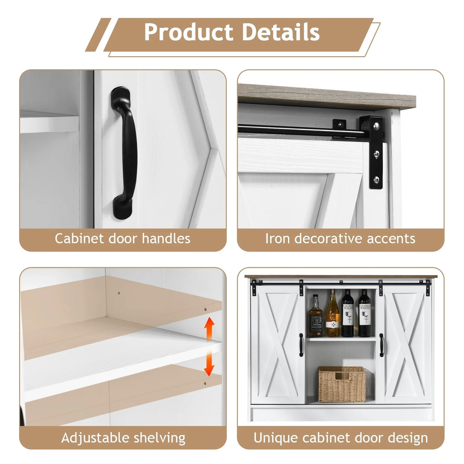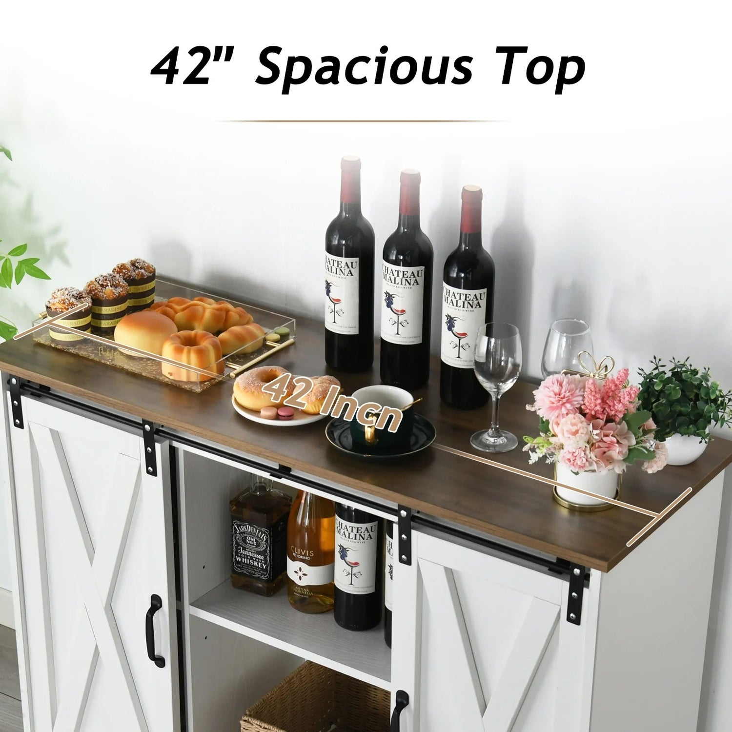 42” Coffee Bar Cabinet Farmhouse TV Stand Adjustable Shelves Sliding Barn Doors