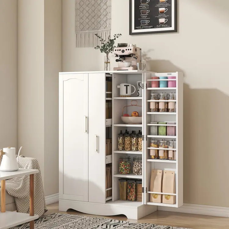 47" Kitchen Pantry Cabinet With Drawer, Storage Cabinet With Adjustable Shelves, White Buffet