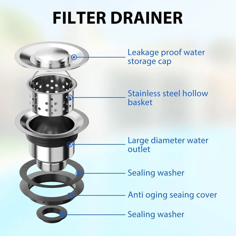 Dimension (inch):38.98 x 17.72 x 33.46 + 3.94 Inner Tub (inch):10.24 x 11.02 x 8.7 Drainer:3" 1/2 US Standard Sink Drain Installation