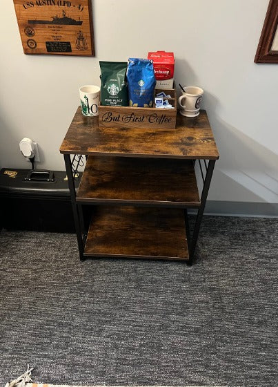 -THREE-TIER AMPLE RACK & MULTI-PURPOSE SHELVES — Classic 3-tier structure with ideal size 15.7"D * 23.7"W * 28.74"H for your counter space; the sturdy top shelf can hold a microwave oven and other kitchen appliances. The 2nd/3rd tier can hold toaster, spice, dishes and any other things you want. Little hooks make it convenient to hang some cooking tools.