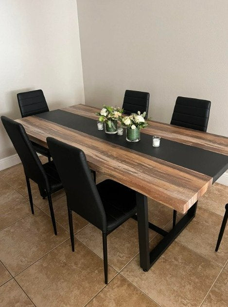 Table Construction: Made from 2" thick, high-quality MDF board and a heavy-duty metal frame measuring 2.4" x 1.2". The trapezoidal-shaped legs, with iron tubes linked at the center, provide exceptional stability and sturdiness. The surface is both scratch-resistant and water-resistant, making it easy to clean.