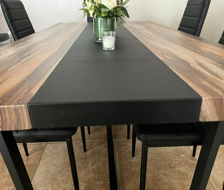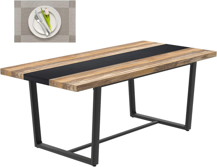 71'' Farmhouse Dining Table Set – Modern Black & Brown 6ft Table with 6 Chairs for Kitchen or Dining Room
