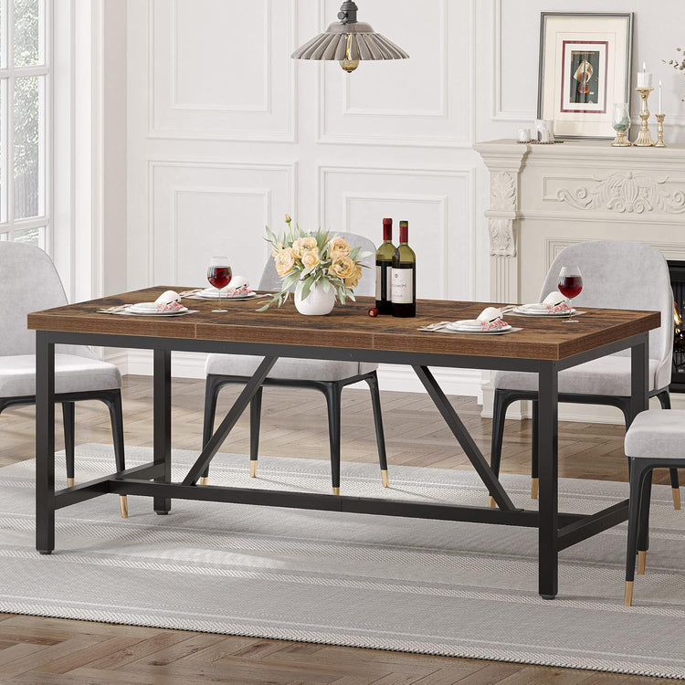 NEW Large Kitchen Dining Room Table for 6-8 People, Rustic Brown Farmhouse