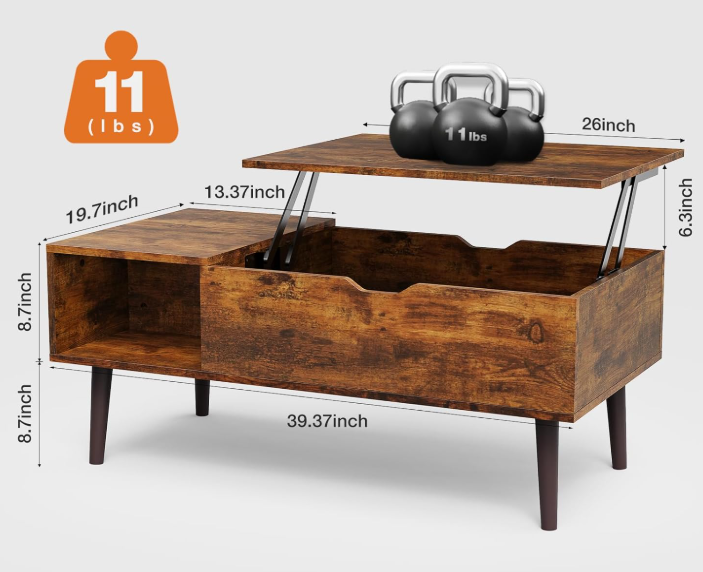 The lift top coffee table for living room has a beautiful finish and subtly textured feel, which matches your living room/reception/office style and decor very well. This modern coffee table perfectly highlights your unique aesthetic and taste, being a part of your apartment decor. The assembly for this lift-up center table is easy with the help of the enclosed parts, tools and illustrated assembly instructions