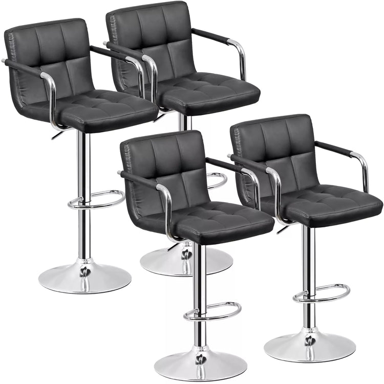 New Set of 4 Bar Stools Swivel Adjustable Bar Chairs PU Leather w/Backrest & Armrest