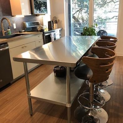 - Great for chopping, sorting, and assembling, this work table provides a sturdy, spacious surface for food prep and storage. With its high weight capacity, easy-to-clean surface, and overall functional design, you can organize your kitchen to create an efficient work flow.