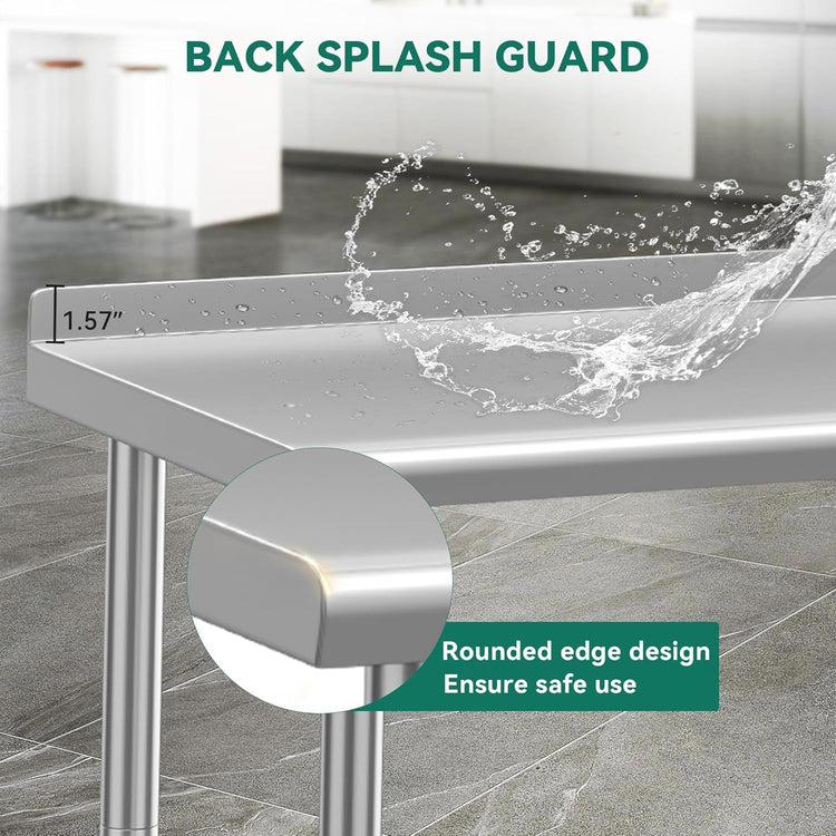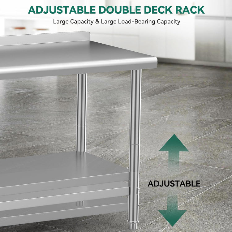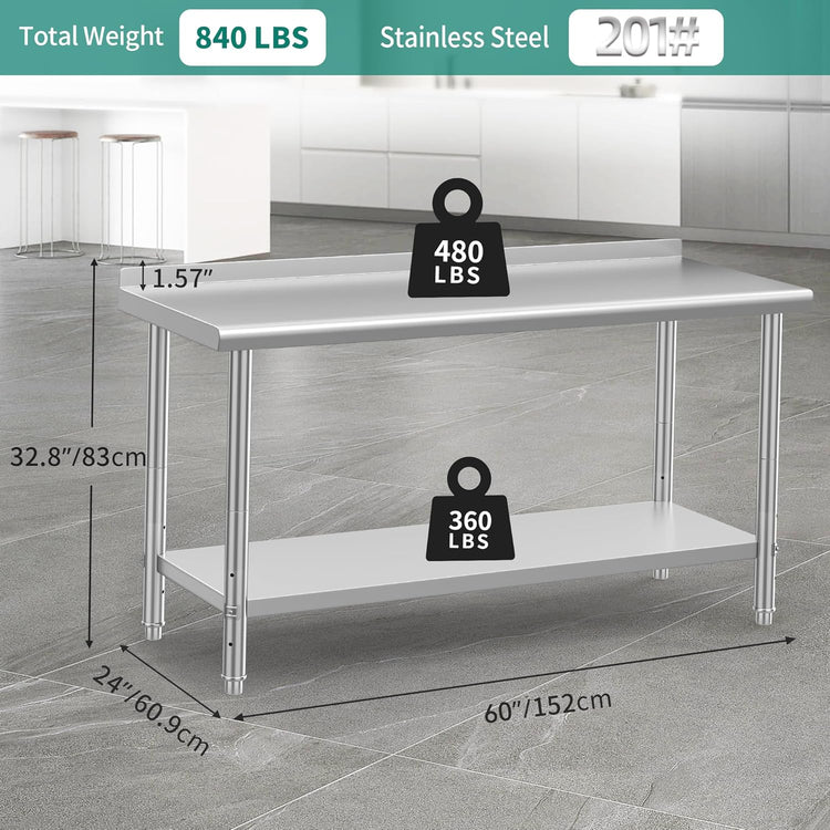 Stainless Steel 60" x 24" NSF Kitchen Restaurant Work Prep Table with Backsplash and Adjustable Bottom Shelf