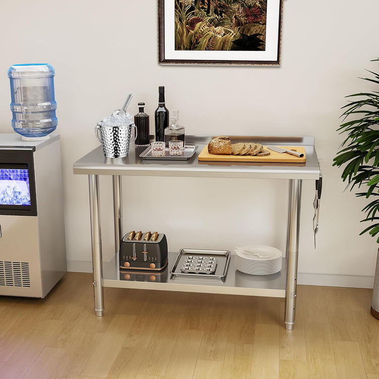 Adjustable Height Under-Shelf: The heavy-duty galvanized steel under-shelf offers ample support for additional equipment, pots, pans, and supplies, and its height can be adjusted for convenience.
