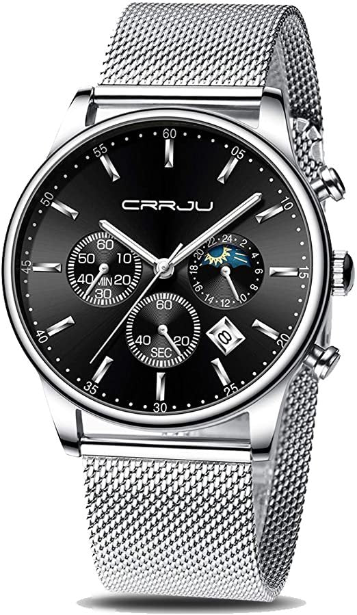 Men's Watches Auto Date Chronograph Waterproof with Mesh Strap